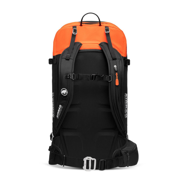 • バックパックは、Removable Airbag System 3.0を搭載しています(圧縮空気カートリッジは別売り)。高さ調節可能な展開ハンドルと鮮やかなオレンジ色のエアバッグバルーンを備えた、信頼性が高くコンパクトで軽量なこのエアバッグシステムは、対応するバックパック間で付け替え可能で、重量はわずか700g(カートリッジを含めると1kg)です。
